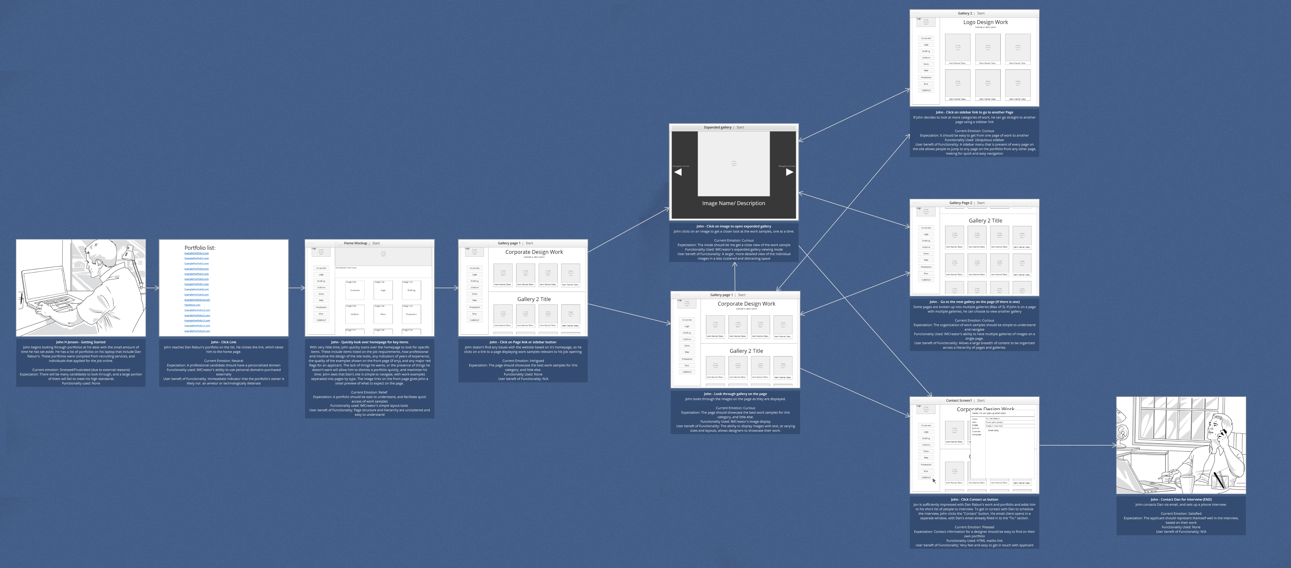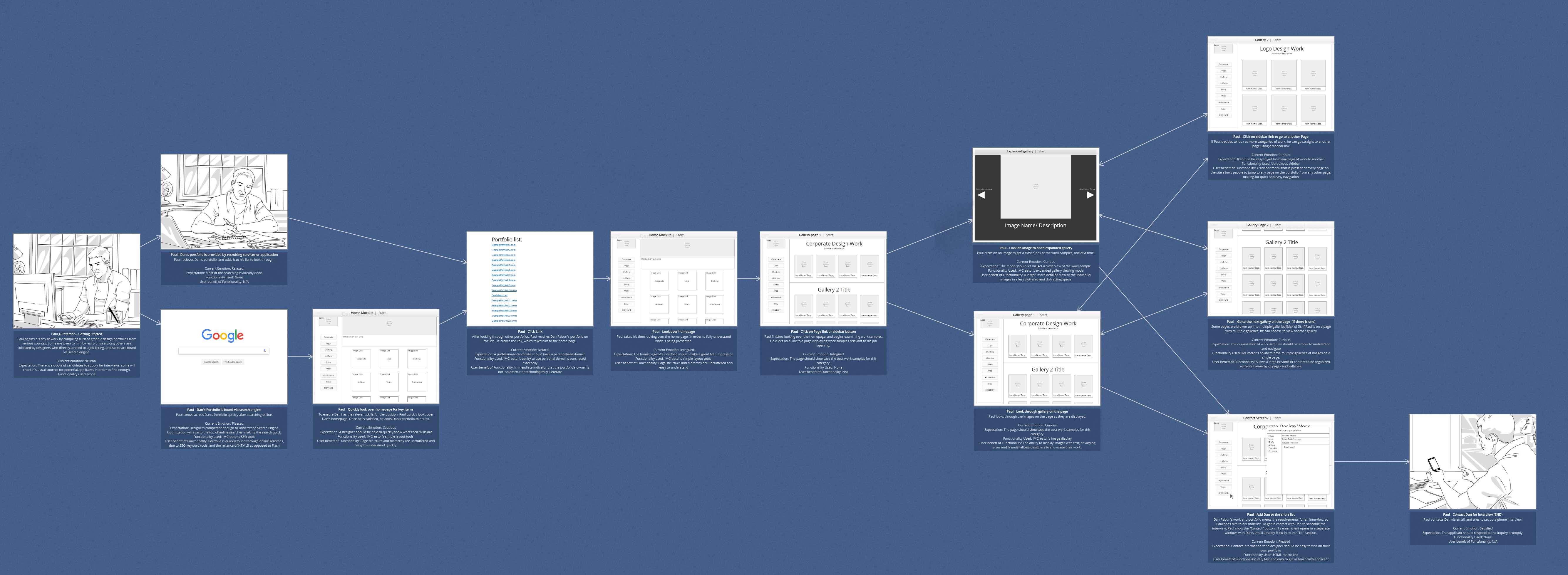 These personas really helped me to understand the target audience better, and made the task of user journeys much easier. While I’m a huge fan of the classic “pencil and paper” toolkit, I decided to use Indigo Studio to build out my user journeys and wireframes. Paul, John, and Georgine each went on a distinct, but at times, similar user journey.